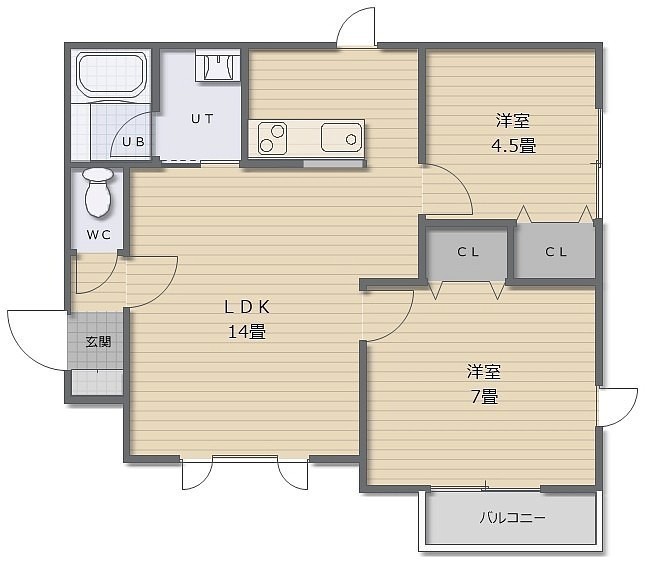 2LDK(52.99m²)└ LDK14帖 洋室7帖 洋室4.5帖
