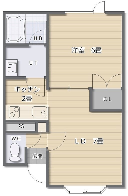 1DK(42.97m²)└ D7帖 K2帖 洋室6帖