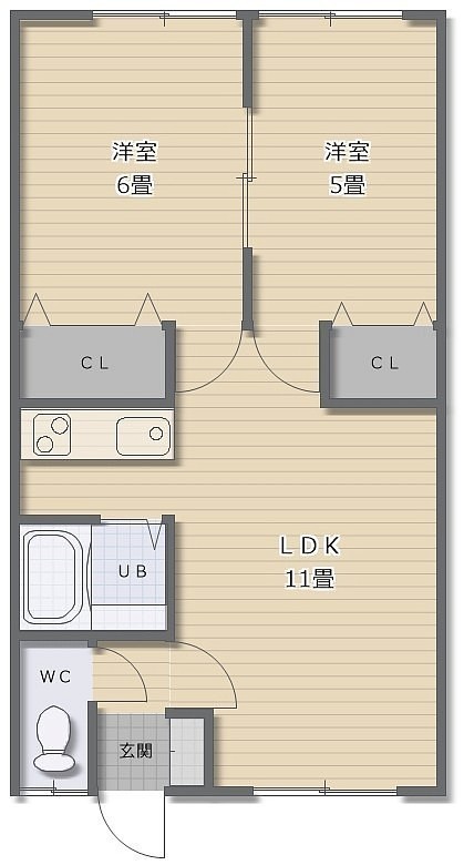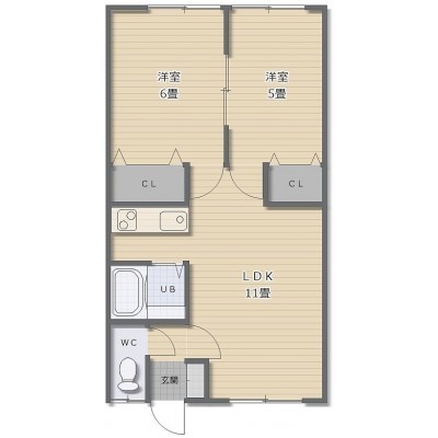 2LDK(46.28m²)└ LDK11帖 洋室6帖 洋室5帖