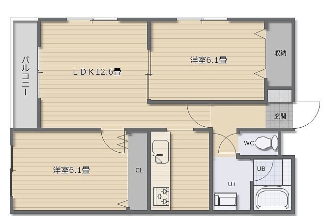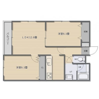 2LDK(58m²)└ LDK12.6帖 洋室6.1帖 洋室6.1帖