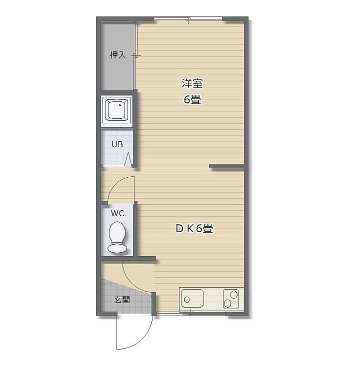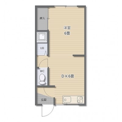 1DK(25.59m²)└ DK6帖 洋室6帖