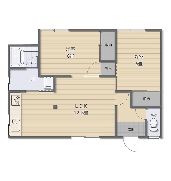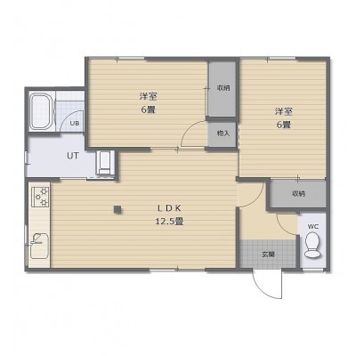 2LDK(56.31m²)└ LDK12.5帖 洋室6帖 洋室6帖