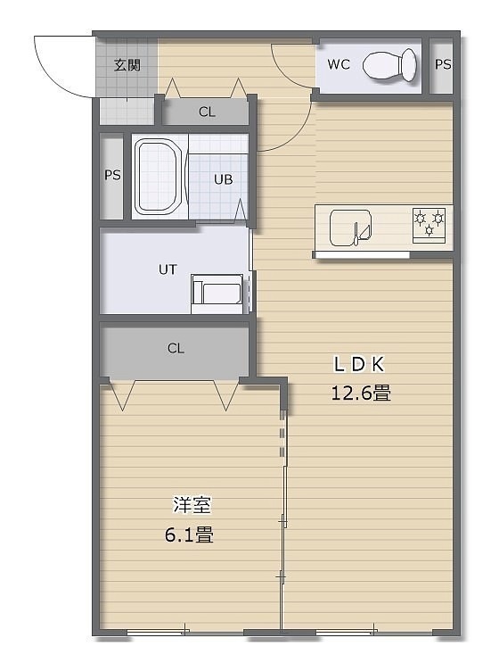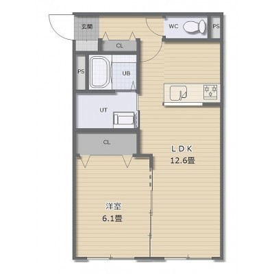1LDK(44.1m²)└ LDK12.6帖 洋室6.1帖