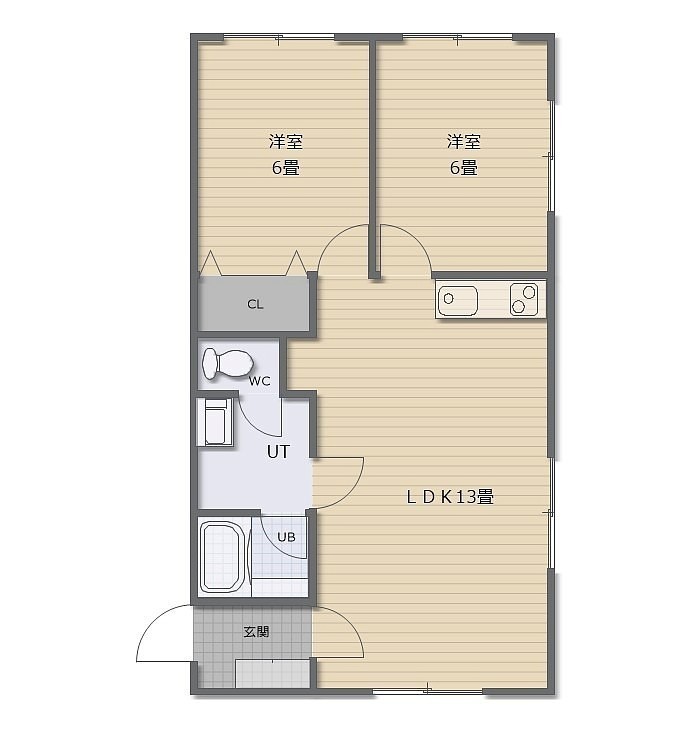 2LDK└ LDK13帖 洋室6帖 洋室6帖