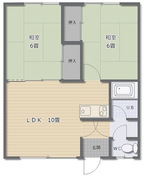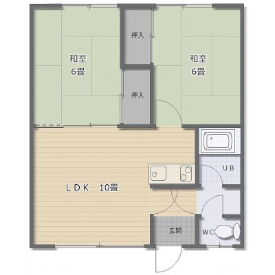 2LDK(46.4m²)└ LDK10帖 和室6帖 和室6帖