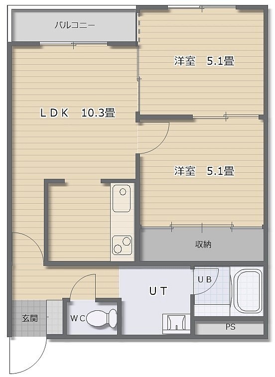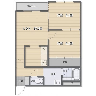 2LDK(47.01m²)└ LDK10.3帖 洋室5.1帖 洋室5.1帖