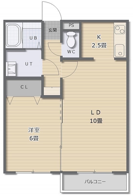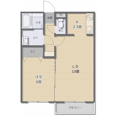 1LDK(41.78m²)└ LD10帖 K2.5帖 洋室6帖