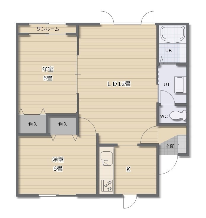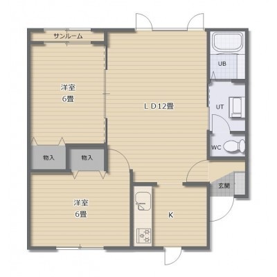 2LDK└ LD12帖 K 洋室6帖 洋室6帖