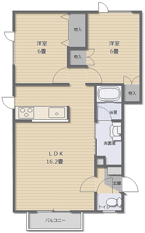 2LDK(56.19m²)└ LDK16.2帖 洋室6帖 洋室6帖