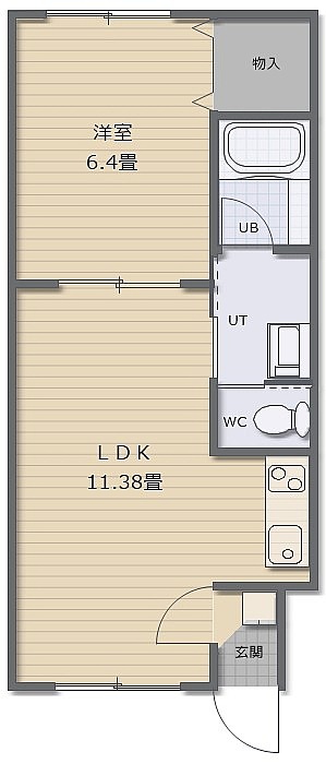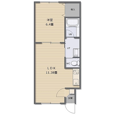 1LDK(38.7m²)└ LDK11.38帖 洋室6.4帖