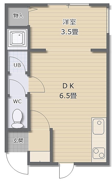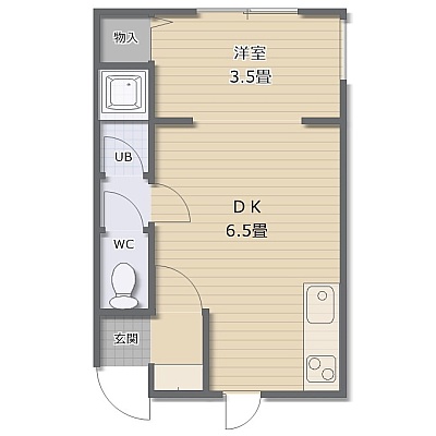 1DK(22.62m²)└ DK6.5帖 洋室3.5帖