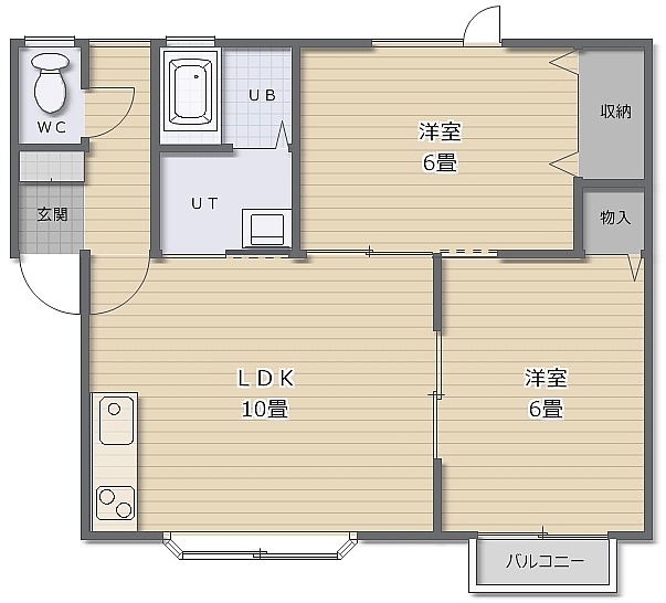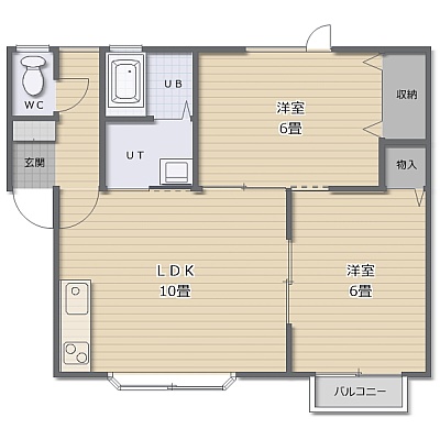 2LDK(50.64m²)└ LDK10帖 洋室6帖 洋室6帖