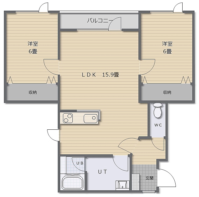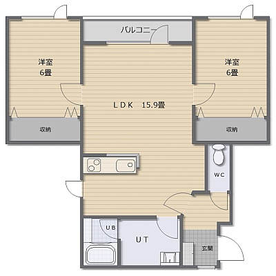 2LDK(55.48m²)└ LDK15.9帖 洋室6帖 洋室6帖
