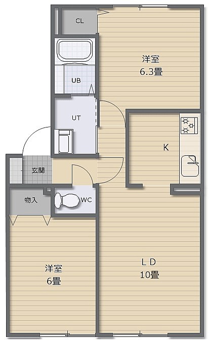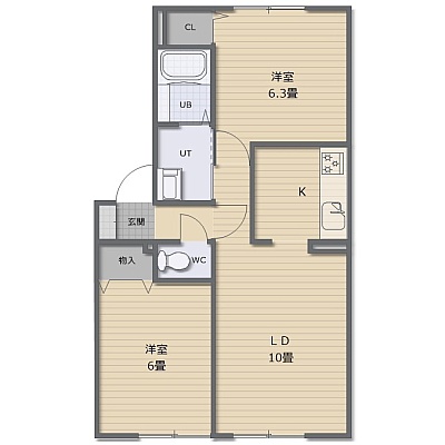 2LDK(53.79m²)└ LDK12帖 洋室6.3帖 洋室6帖