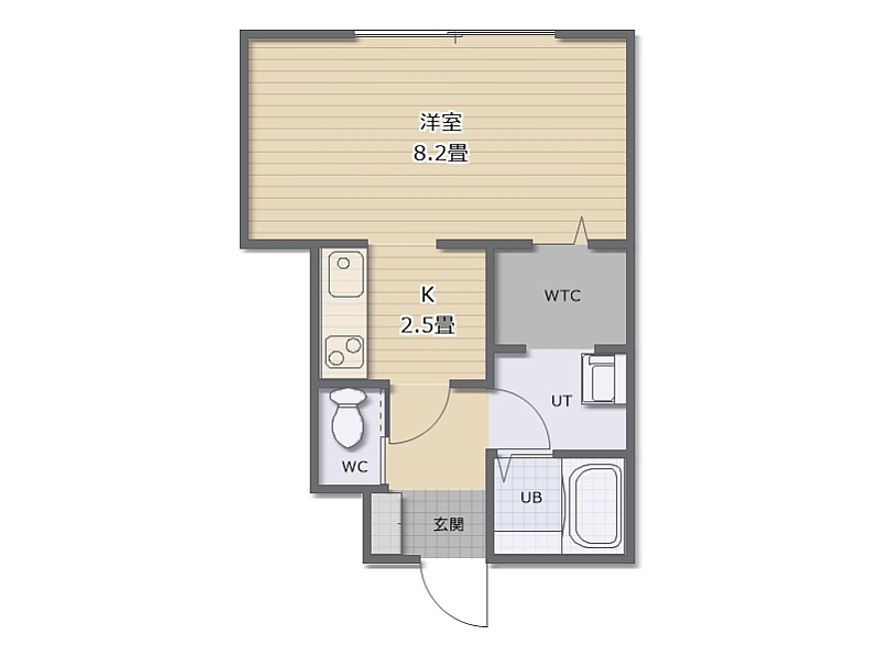 1K(31.36m²)└ 洋室8.2帖 K2.5帖