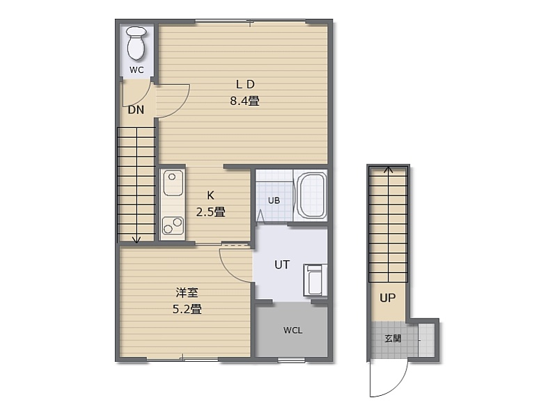 1LDK(39.85m²)└ LD8.4帖 K2.5帖 洋室5.2帖