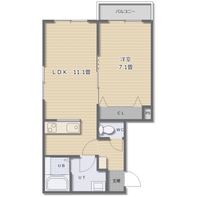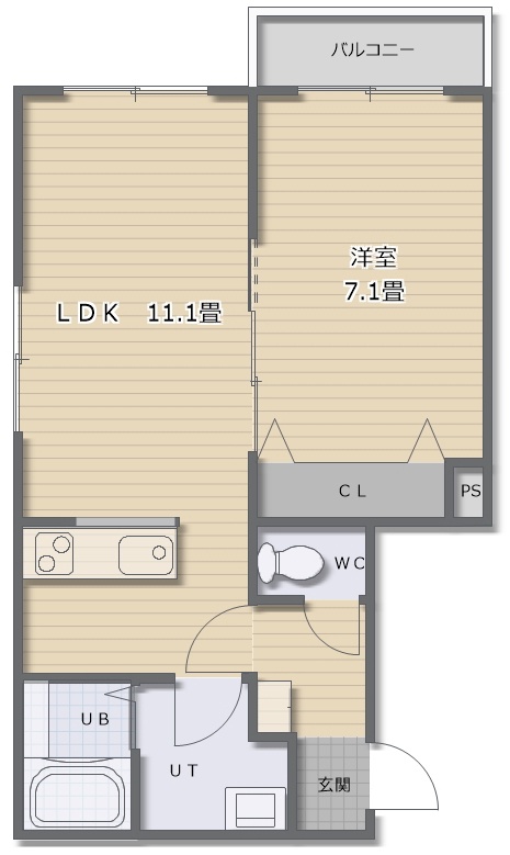1LDK(39.5m²)└ LDK11.1帖 洋室6.1帖