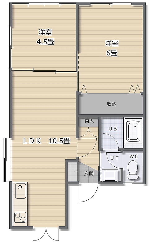 2LDK(45.04m²)└ LDK10.5帖 洋室6帖 洋室4.5帖