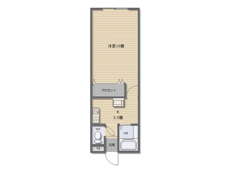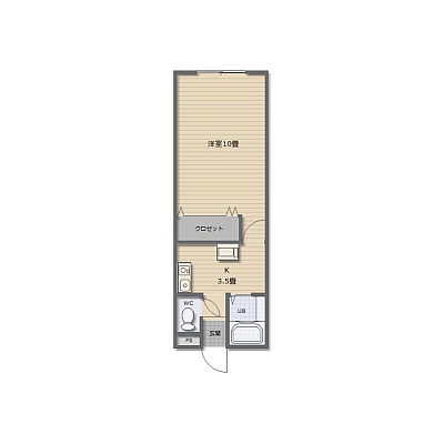 1K(17.64m²)└ 洋室10帖 K3.5帖