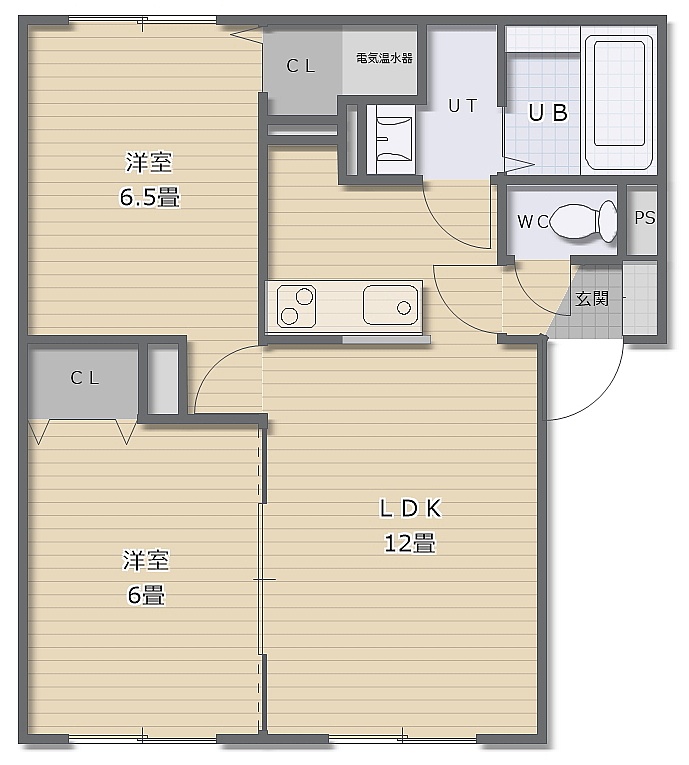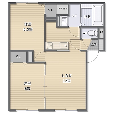2LDK(53.98m²)└ LDK12帖 洋室6.5帖 洋室6帖