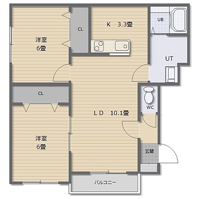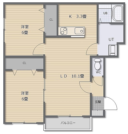 2LDK(54.47m²)└ LDK13.4帖 洋室6帖 洋室6帖