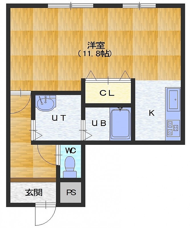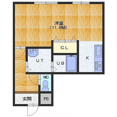 1K(34.5m²)└ 洋室11.8帖 K2.3帖