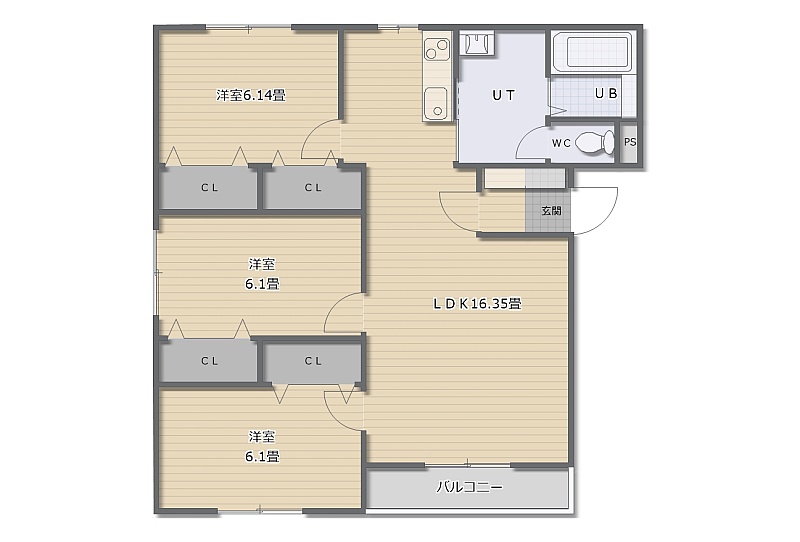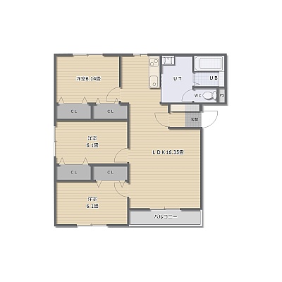 3LDK(68m²)└ LDK16.3帖 洋室6.1帖 洋室6.1帖 洋室6.1帖