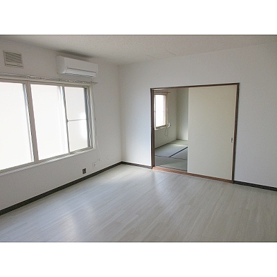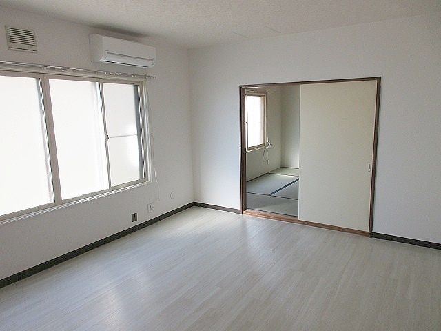 10帖DK NO2 (6帖奥側和室への動線)窓上部にエアコン設置