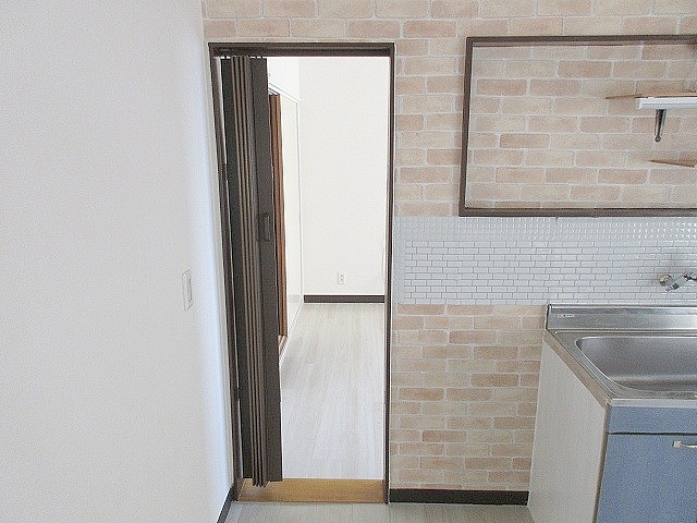 キッチン横から洋室への動線(仕切りのアコーディオンカーテン)