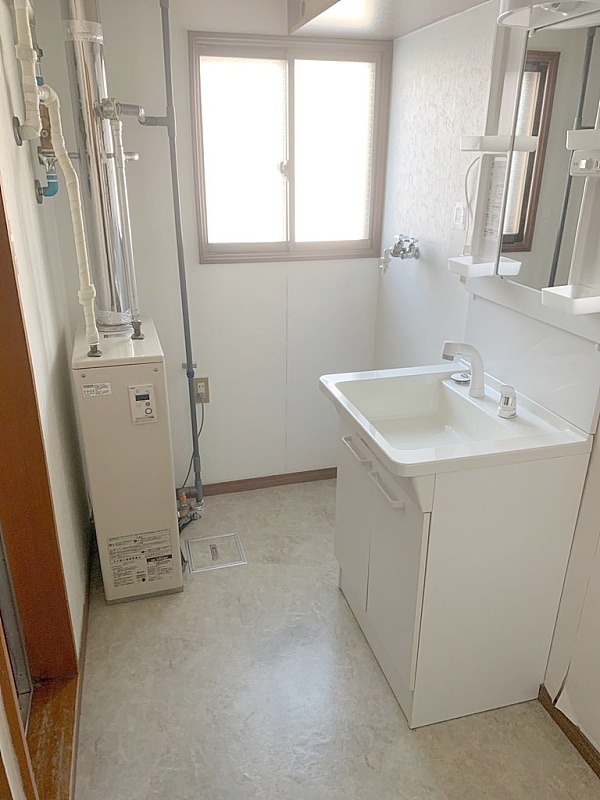 洗面脱衣場内設置の灯油式給湯ボイラー