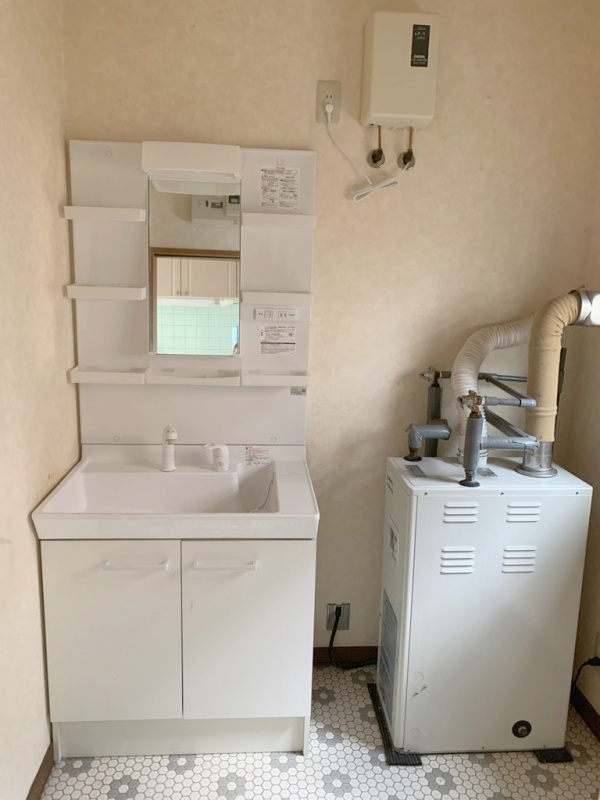 シャンプードレッサー付き洗面台と灯油式ボイラー