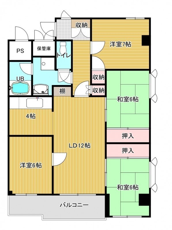 4LDK(89.24m²)└ 4階:LD12帖 K4帖 洋室7帖 洋室6帖 和室6帖 和室6帖