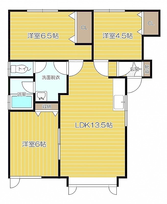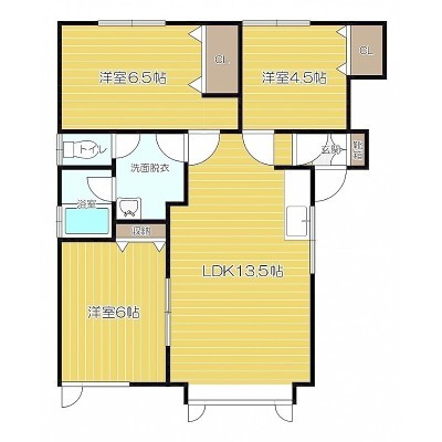 3LDK(62.93m²)└ LDK13.5帖 洋室6帖 洋室6帖 洋室4.5帖