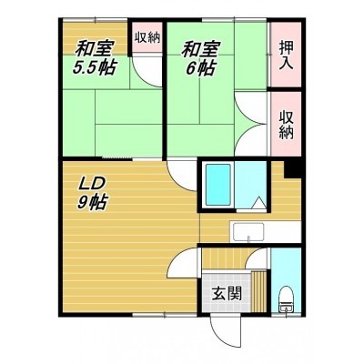 2LDK(48.19m²)└ 1階:L9帖 K2.25帖 和室6帖 和室5.5帖