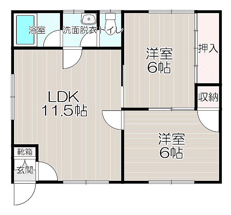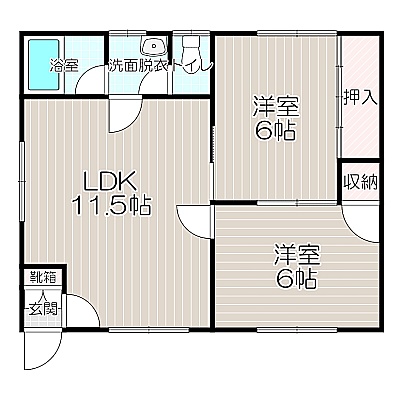 2LDK(48.59m²)└ LDK11.5帖 洋室6帖 洋室6帖
