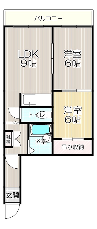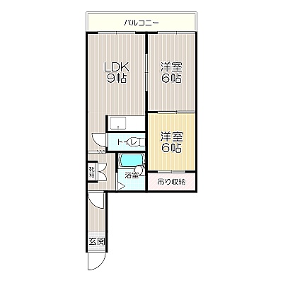 2LDK(31.68m²)└ LDK9帖 洋室6帖 洋室6帖