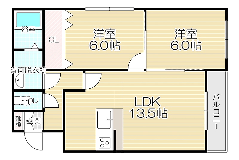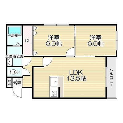 2LDK(55.08m²)└ LDK13.5帖 洋室6帖 洋室6帖