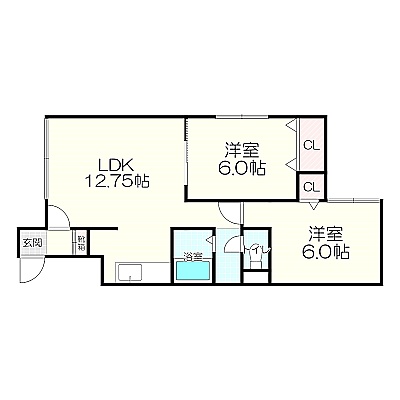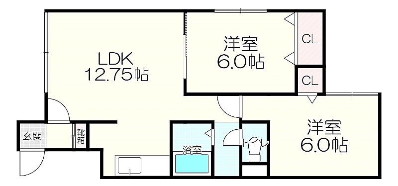 2LDK(52.06m²)└ LDK12.75帖 洋室6帖 洋室6帖