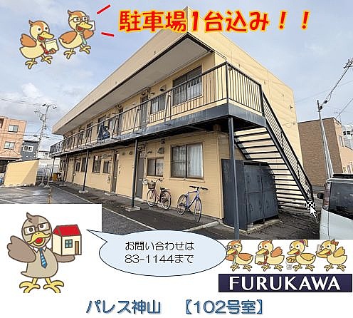 ここに注目!広々2LDKのお部屋です!駐車場1台分込みのお得な賃料となっております💰☺️ファミリーにもおすすめです✨産業道路近くで交通アクセツばつぐん🚙大型ショッピングセンター、コンビニ、飲食店等々近くの生活利便性に優れた好立地ですよ👍 ☆お問い合わせは、㈱フルカワ不動産販売0138-83-1144へ☆🐓彡