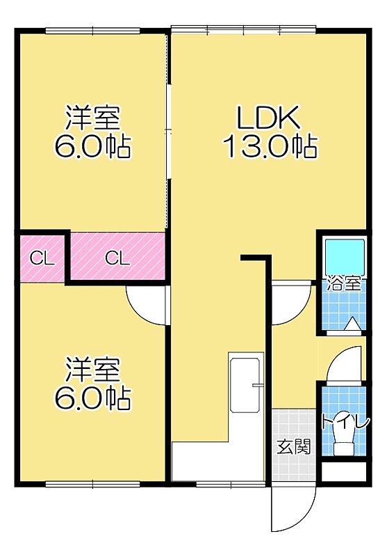 2LDK(52.17m²)└ LDK13帖 洋室6帖 洋室6帖