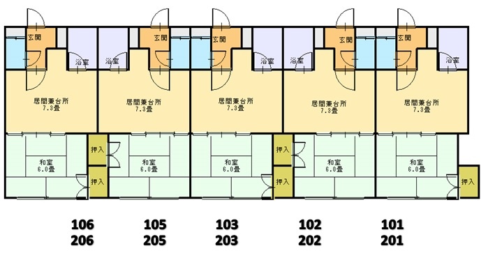 所在階/建物の階建 2階(205) / 地上2階建 総戸数 10戸 主要採光面 南 構造 木造 契約期間 2年間 更新料/更新手数料 なし 住宅保険 1万6,920円(2年間) その他費用 その他 - 保証加入料(初年度):2万円
