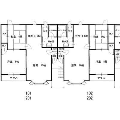 2LDK(59.87m²)└ 2階:LD10帖 K4.6帖 洋室8帖 和室6帖