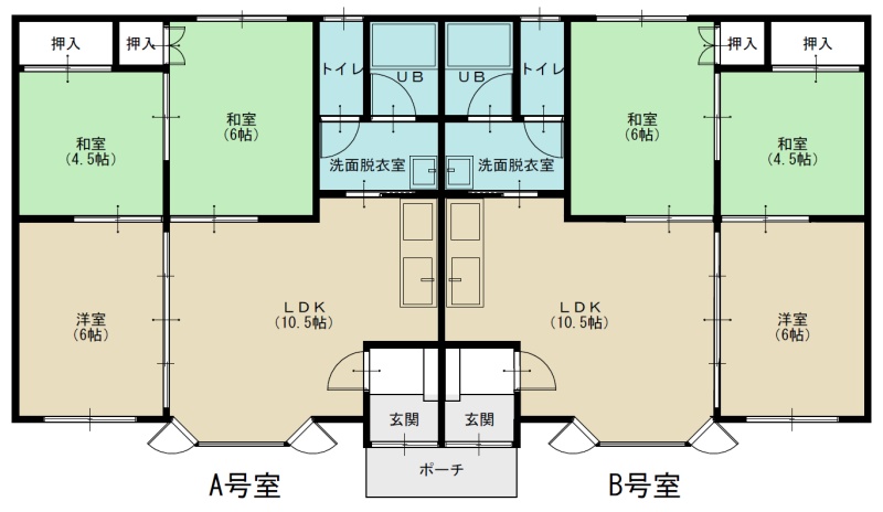 3DK(55.68m²)└ 1階:DK10.5帖 和室6帖 洋室6帖 和室4.5帖