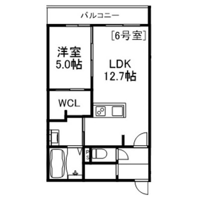 1LDK(45.36m²)└ 4階:洋室5帖 LDK12.7帖