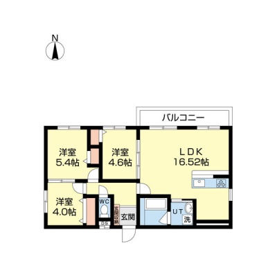 3LDK(65.18m²)└ LDK16.52帖 洋室5.4帖 洋室4.6帖 洋室4帖