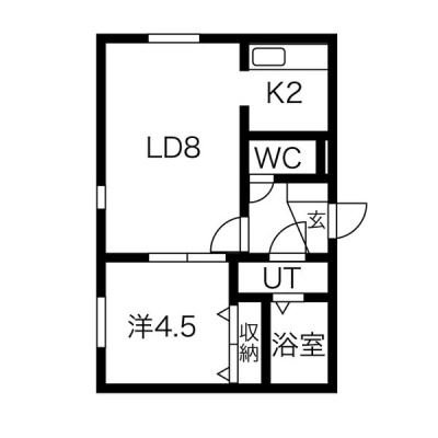 1LDK(34.83m²)└ LD8帖 洋室4.5帖 K2帖