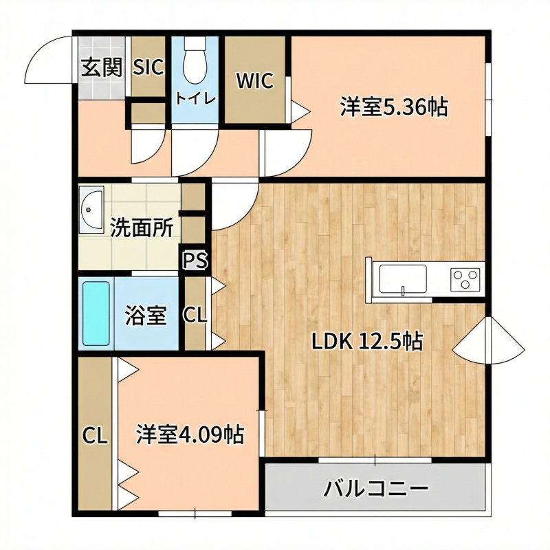 2LDK(53.22m²)└ LDK12.5帖 洋室5.36帖 洋室4.09帖