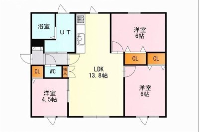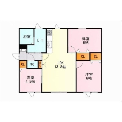 3LDK(65.34m²)└ LDK13.8×洋6×洋6×洋4.5