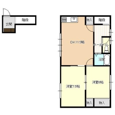 2DK(45.36m²)└ DK11.5×洋7.5×洋6