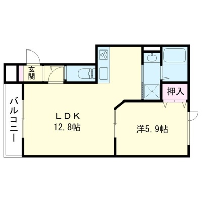 1LDK(40.9m²)└ 1階:LDK12.8帖 洋室5.9帖